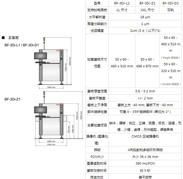 SAKI在線在線AOI自動光學檢測儀BF-3Di參數(shù)簡介: