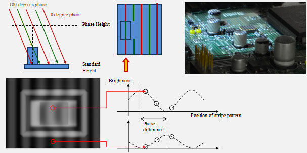 SAKI BF-3Di AOI SAKI在線在線AOI自動光學檢測儀BF-3Di功能簡介: 1.1 投影系統(tǒng)原理 - 2D + 3D 檢測 SAKI在線在線AOI自動光學檢測儀BF-3Di可以同時獲取2D和3D的圖像