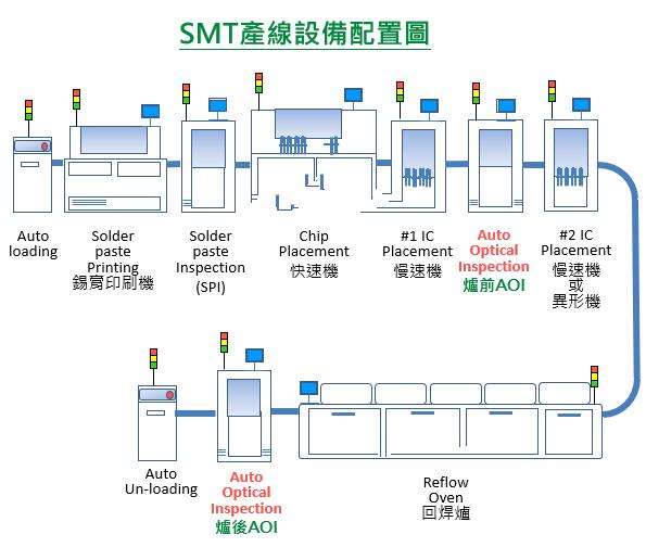 6.檢測:其作用是對組裝好的PCB板進行焊接質量和裝配質量的檢測。所用設備有放大鏡、顯微鏡、在線測試儀(ICT)、自動光學檢測(AOI延伸閱讀:什么是AOI?詳解自動光學檢測設備aoiX-RAY檢測系統、功能測試儀等。位置根據檢測的需要,可以配置在生產線合適的地方。